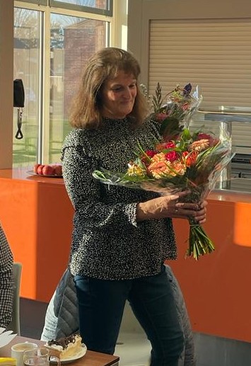 Dinsdag 1 november hebben we onze schoolschoonmaakster Alie in het zonnetje gezet. Ze is namelijk 25 jaar in dienst bij SG Perspectief. Alie is begonnen op De Ark in Holte, daarna op De Langeveld en is vervolgens, toen deze school werd afgebroken en samen verder ging met De Regenboog, op CBS De Rank terechtgekomen. Gefeliciteerd Alie!