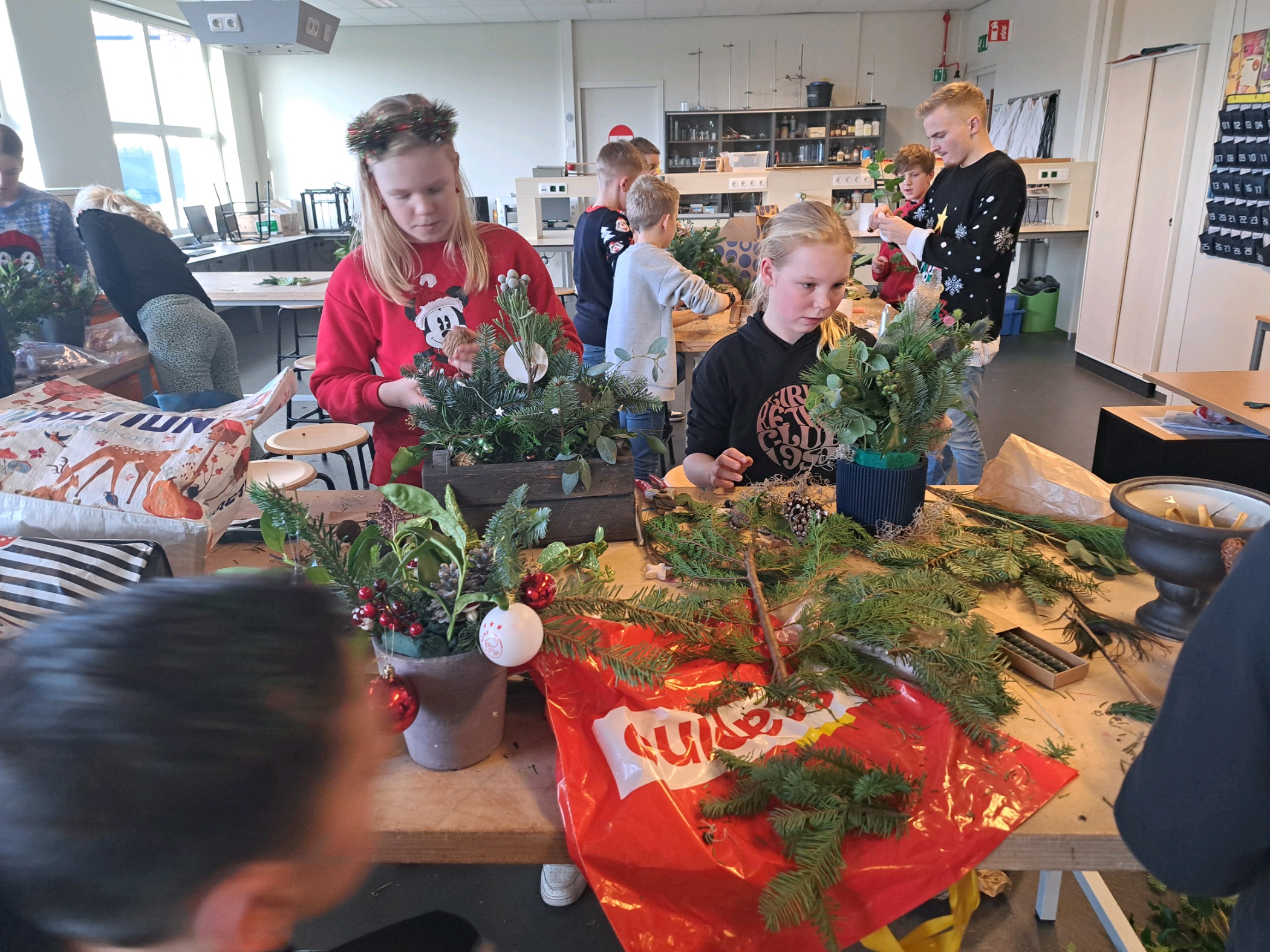 Het kan pas echt kerst worden als we de kerstknutselmiddag weer gehad hebben. Sfeervol muziekje aan, bakjes mee, en daar gaan we!