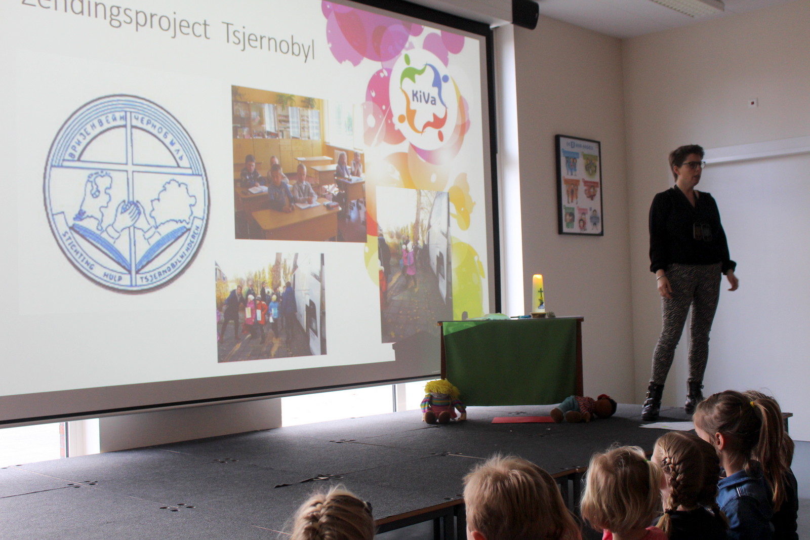 Dhr. van der Heide van de werkgroep Tsjernobyl ontving een cheque van € 1000, — voor de kinderen uit Tsjernobyl. Tsjernobyl is het gebied waar in 1986 de vreselijke kernramp plaatsvond, waarvan de gevolgen nog steeds voelbaar zijn. Deze week komt er weer een groep kinderen naar Onstwedde, Mussel en Musselkanaal om hier aan te sterken.